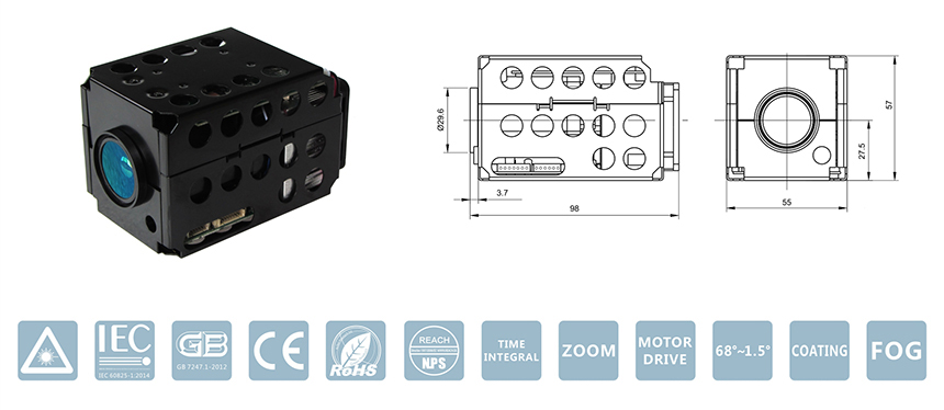 | Illumination angle | Electric synchronous zoom,68°~1.5°continuous adjustable |