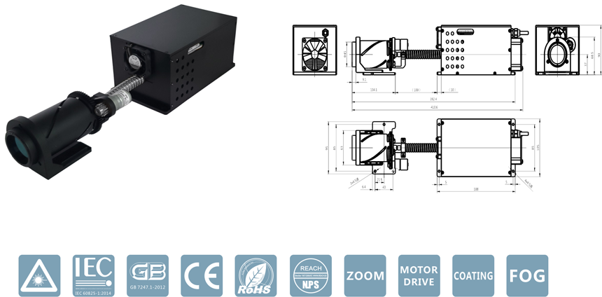 | Illumination angle | Electric synchronous zoom,42°~0.3°continuous adjustable |
