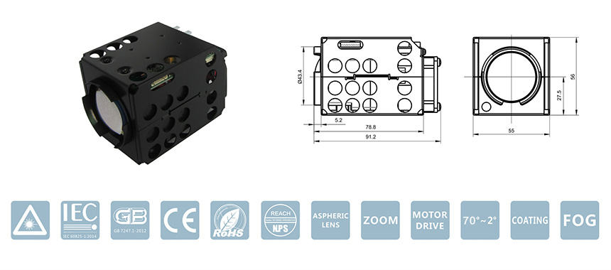 | Illumination angle | Electric synchronous zoom, 70°~2°continuous adjustable |
