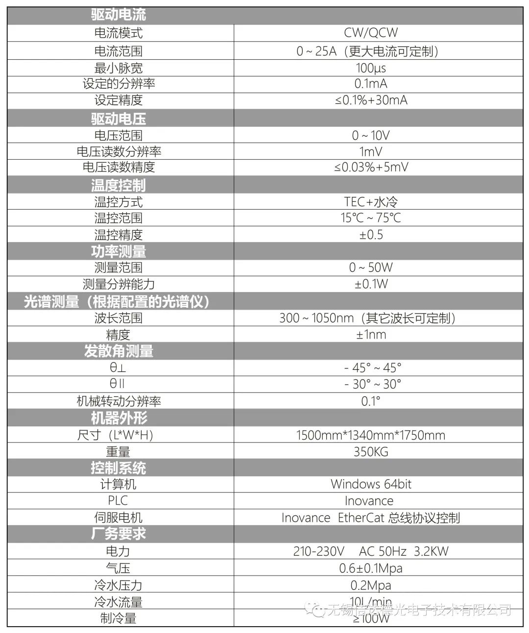 全自動COS測試機是一體化的半導(dǎo)體激光芯片綜合特性測試設(shè)備。主要針對封裝之后的COS半導(dǎo)體激光器芯片器件,在可控溫度工作臺上自動測定其光功率、電壓、電流、波長、遠場發(fā)散角、偏振等特性,能夠表示結(jié)果、判斷是否為良品并按照標(biāo)準實現(xiàn)測試數(shù)據(jù)和COS實物分類的自動測試設(shè)備。