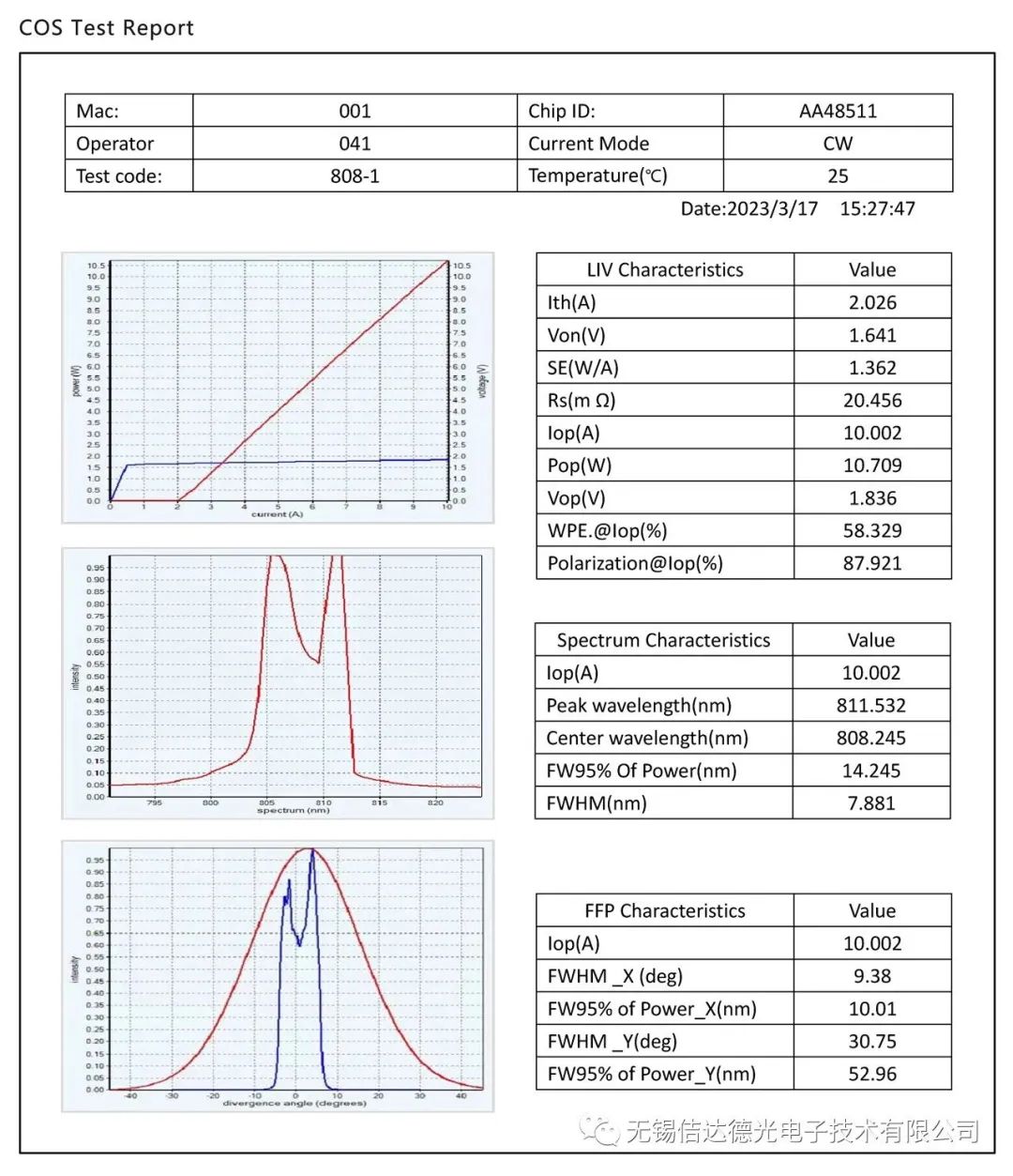 ●在脈沖電流或CW電流模式下測得LIV曲線(5S/10個電流點)、光譜特性、遠場特性、偏振特性,并生成曲線圖和數(shù)據(jù)報告。